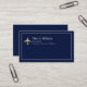 Elegant professional navy-blue business-card with basic information only... your name ('unica one' font style) with custom aeroplane related occupation (pilot) and the image of a small faux gold plane... and address and profession information at the back...