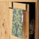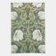 A kitchen towel with the floral pattern by the English artist William Morris (1834-1896) who influenced the Arts and Crafts movement, Pimpernel (1876). White poppies with green leaves and yellow pimpernel flowers.