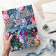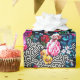 Make a bold statement with this wild mixture of flowers and leaves in every colour, on a black and white maze background.