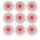 These stickers are made to fit standard sized pinball machine round targets that are approximate 1” in diameter.