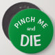 You know that day of the year where people pinch you if you're not wearing green? You know, like when you're a school kid and someone pinches you but you had green socks on and so you punch them in the face and get sent home early? This button will clear up all the confusion. Not only will it really clearly count as wearing green, you also have established a legal right to kill anyone who ignores it and pinches you anyways. Possibly it will even allow you to kill someone who pinches you any day of the year, we're still checking with our legal department. Let everyone know what you think of their stupid holiday traditions with this wonderful and friendly button.