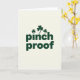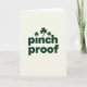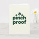 This design shows a light cream background with the phrase “pinch proof” centered in dark emerald green, giving it a calm, festive look 💚. The words are set on two lines, with “pinch” above “proof,” creating a neat, balanced focal point that feels easy on the eyes. The thick, simple lettering has a friendly confidence, like an inside joke shared between close friends at a St. Patrick’s Day get-together ☘️. A large shamrock takes the place of the dot over the “i” in “pinch,” adding a sweet, flirty wink to the message. Two smaller shamrocks sit near the upper right of the “h,” like little accents that lean toward each other the way a couple might in a photo. The deep green against the pale background keeps the text clear and gives the layout a crisp contrast. The shamrocks are the only extra graphics, so your attention stays on the centered words and their clever details. The largest shamrock sits directly above the “i,” while the two smaller ones hover just over the “h” on the top line.