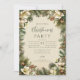Celebrate the season with this rustic Christmas party design, featuring lush evergreen branches, pinecones, and bright red berries framing elegant script. A festive and timeless look that sets the perfect tone for your holiday gathering.