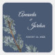 This Pine Blue Winter wedding sticker combines a classy, formal dusty blue background with elegant, evergreen pine tree boughs for a classic, yet rustic look. The botanical greenery foliage with calligraphy type creates a nature focused, neutral vibe for a Christmas or forest destination marriage celebration.
