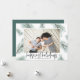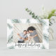 A modern and elegant holiday card design featuring your favourite landscape orientated or horizontal photo surrounded by spruce green watercolor pine boughs and Christmas greenery. "Happiest Holidays" appears beneath in handwritten lettering. Personalise with your family name along the bottom.
