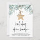 Invite friends to mix & mingle this holiday season with our modern and festive holiday open house invitations. Design features watercolor pine boughs with a wooden star ornament, and "holiday open house" in modern handwritten lettering. Customise with your holiday party details beneath.