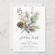 This elegant Christmas holiday party invitation features a beautiful pine branch, white flowers, holly berries and pinecone set on a white background. The invitation is perfect for inviting your friends and family to a festive holiday gathering. The overall design is festive and sophisticated, and the invitation is sure to impress your guests.