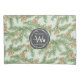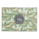 Beautiful watercolor pine branches and pine cones snowing pattern with a round watercolor badge and a monogram.