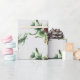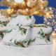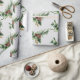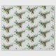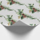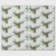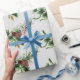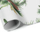 Festive and wintery wrapping paper for the Holidays features a watercolor pattern of evergreen branches with pinecones on light grey background.