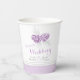 Personalise these wedding party paper cups with your own couple's full names. Purple, grey and white cups ideal for winter wedding event. Other matching items are available. © Original pine cone art hand drawing and design by Sarah Trett for www.mylittleedenweddings.com