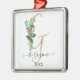 "Pine Cone Holly Christmas Gold Glitter Monogram G Metal Ornament ." Elegant watercolor holly leaves and red winter berries along with leaf foliage and golden greenery over your monogram. Art by internationally licensed artist, Audrey Jeanne Roberts, copyright.