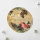 A beautiful Christmas holiday card to send to all your friends and family members, features a round card with a brown textured look background, pine cones, tree branches, a red cardinal bird, and customisable text that reads God Jul & Gott Nytt År on the front, the same textured look brown background, pine cones, branches, a birch tree, and a woodpecker with a customisable area to add your family name, first names, and current year on back.