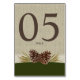 Pine cones and burlap printed table number card to compliment our woodland green wedding pine cone invitation set, can be personalised and ordered individually. All parts of this card are printed. There are no burlap or pine cones attached.