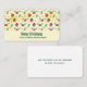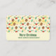 Business cards with a cute pattern featuring pine cones and holly on a yellow watercolor background with little white circles scattered around. Christmas greeting on the back.