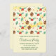 Christmas party invitation with a cute pattern featuring pine cones and holly on a yellow watercolor background with little white circles scattered around.