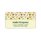 Address labels with a cute pattern featuring pine cones and holly on a yellow watercolor background with little white circles scattered around.