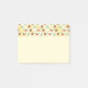 Sticky notes with a cute pattern featuring pine cones and holly on a yellow watercolor background with little white circles scattered around.