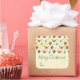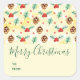 Merry Christmas stickers with a cute pattern featuring pine cones and holly on a yellow watercolor background with little white circles scattered around.