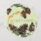 A beautiful Christmas holiday card to send to all your friends and family members, features a round card with a green watercolor background, pine cones, tree branches, and customizable text that reads Have a Merry Little Christmas on the front, the same watercolor green background, pine cones, branches, and birch tree with a customizable area to add your family name, first names, and current year on back.