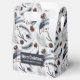 A favour box with a beautiful pattern. Pine cones, feathers, pine needles and berry sprigs. Rustic watercolor design.