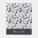 A blanket with a beautiful pattern. Pine cones, feathers, pine needles and berry sprigs. Rustic watercolor design.