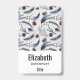 Personalised name badge with a beautiful pattern. Pine cones, feathers, pine needles and berry sprigs. Rustic watercolor design.