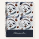 A personalised spiral notebook with a beautiful pattern. Pine cones, feathers, pine needles and berry sprigs. Rustic watercolor design.