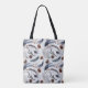 A tote bag with a beautiful pattern. Pine cones, feathers, pine needles and berry sprigs. Rustic watercolor design.