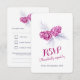 RSVP features two pine cones / confer cones with needle foliage sketched in pencil and coloured in plum purple and navy blue hues on a crisp white background. Great for co-coordinating with plum and navy weddings or for nature themed winter country rustic themed wedding. Part of the pine cone drawing wedding set. Edit this RSVP invitation with your names, dates and wording. Unique drawing and design by Sarah Trett for www.mylittleedenweddings.com on zazzle.