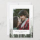 Dark green rustic watercolor pine tree forest holiday card designed by Shelby Allison that can be personalised with a photo and text on the front as well as an optional photo and greeting on the back.