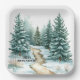 Pine Forest in Snow Winter Bridal Shower Paper Plate