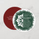 Pine tree green and burgundy business holiday card with snowflake and typography design. Modern snowflake artwork can be transferred to stickers and other stationary! Rustic winter green artwork is versatile for a variety of midnight green, grayish green, maroon, or red company colours.