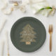 Pine Green Gold Glitzy Glitter Christmas Tree Paper Plate