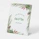 Pine needles red berry wreath wedding pedestal sign