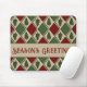 Show your love for the holidays with this pine tree mouse pad. Featuring cosy holiday colours of red, green, brown and tan. The red diamonds can be customised by changing the background colour. Personalise by changing or removing the text. If you only want the background pine tree design, you can delete the text and the graphics behind the text to reveal the full design. I created this pattern from an image in my original acrylic painting.