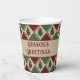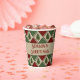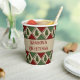 Show your love for the holidays with this pine tree paper cup. Featuring cosy holiday colours of green, red, brown and tan. The red pattern (behind the pine tree design) can be customised by changing the graphic rectangle colour. Personalise by changing or removing the text. I created this pattern from an image in my original acrylic painting.