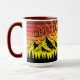 Pine Tree Forest Over Mountains & Retro Sunset Mug