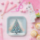 Pine Tree Snowflakes | Blue Orange Coral Ornaments Paper Plate