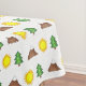 Tablecloth print features an original marker illustration of a row of pine trees, yellow sunshines, and snow-capped mountains. Great for a camper or outdoor enthusiast.