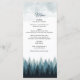A blue pine tree watercolor forest design. This rustic Winter design incorporates different blue tones and watercolor accents. An elegant abstract illustration of pine trees in Winter. This forest design creates an elegant rustic outdoors feel. Rustic wedding menu design with modern elements. Matching wedding invitations and other stationery items are also available.
