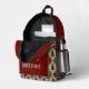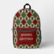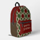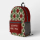 Show your love for winter with this pine tree backpack. Featuring cosy holiday colours of green, red, brown and tan. The red diamonds can be customised by changing the background colour. Personalise by changing or removing the text. I created this pattern from an image in my original acrylic painting.