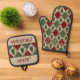 Show your love for winter with this pine tree oven mitt and pot holder set. Featuring cosy holiday colours of green, red, brown and tan. The red diamonds on the oven mitt and the red pattern (behind the pine tree design) on the pot holder can be customised by changing the background colour. Personalise by changing or removing the text. I created this pattern from an image in my original acrylic painting.