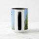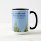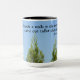 "I took a walk in in the woods and came out taller than the trees." Quote of Henry David Thoreau against a clear blue sky and green pine tree tops on a naturally beautiful photographic mug ideal for any Nature Lover.