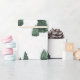 A Winter scene featuring pine trees surrounded by snow. A simple, but beautiful gift wrap for the holidays.