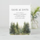 Amaze your guests with this forest theme save the date featuring beautiful pine trees and modern typography with QR code for wedding website. Simply add your event details on this easy-to-use template and adorn this card with your favourite photos to make it a one-of-a-kind save the date card.