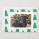 This personalized photo holiday card is characterized by a charming, repeating border of simplified green Christmas trees accented with small gold heart shapes on a neutral background, framing a central photo space. This design aligns with art licensing themes of Christmas/Seasonal Holidays and a Whimsical/Contemporary Festive style. Customers would search for this using terms like "Photo Christmas Card," "Green Christmas Tree Border Card," "Simple Holiday Photo Card," "Personalized Christmas Card," and "Gold and Green Holiday Card.
