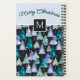 Capture your seasonal reflections with this elegant holiday notebook. The cover showcases a watercolor-style pattern of Christmas trees in soothing shades of pine green, teal, aqua, and lilac, set against a deep black background for a striking contrast. A soft icy-blue panel at the top displays a graceful “Merry Christmas” message in flowing script. Personalise the centre with your initial framed in a classic square border for a unique touch. This spiral-bound notebook is perfect for journalling, holiday organising, or recording your festive inspirations.