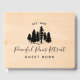 Allow your guests to leave a note and share memories about their stay in your vacation rental. This design features a hand drawn tiny forest of black pine trees and a light wood texture background. Edit this template to easily make this design your own and add a personal and welcoming touch to your guest house.