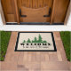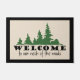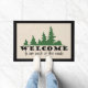 Outdoor welcome doormat with pine trees and Welcome to our Neck of the Woods