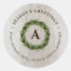 Pine Wreath Monogram Merry Christmas Classic Round Sticker